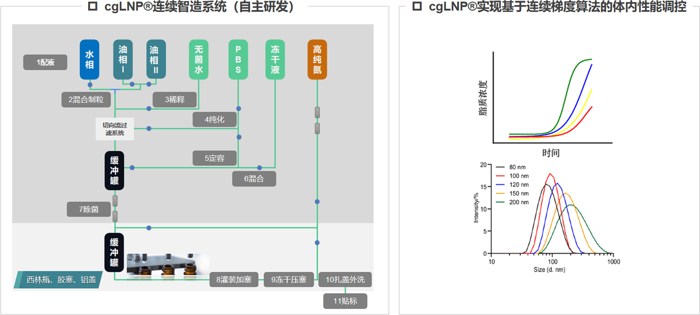 我们团队构建了具有自主知识产权的微流控智能制造平台,用于新型LNP的制备。不同于现有的LNP制备仪器,该智能制造平台可实现LNP处方中单个或多个脂质组份浓度的连续可控变化,突破现有专利枷锁,制备出体内性能多样化的LNP,满足临床不同的应用场景。